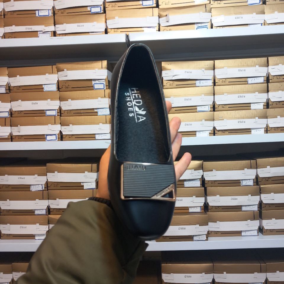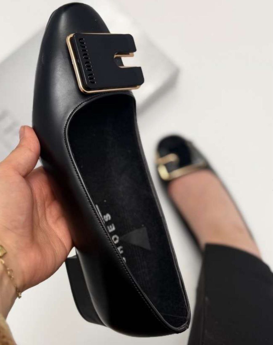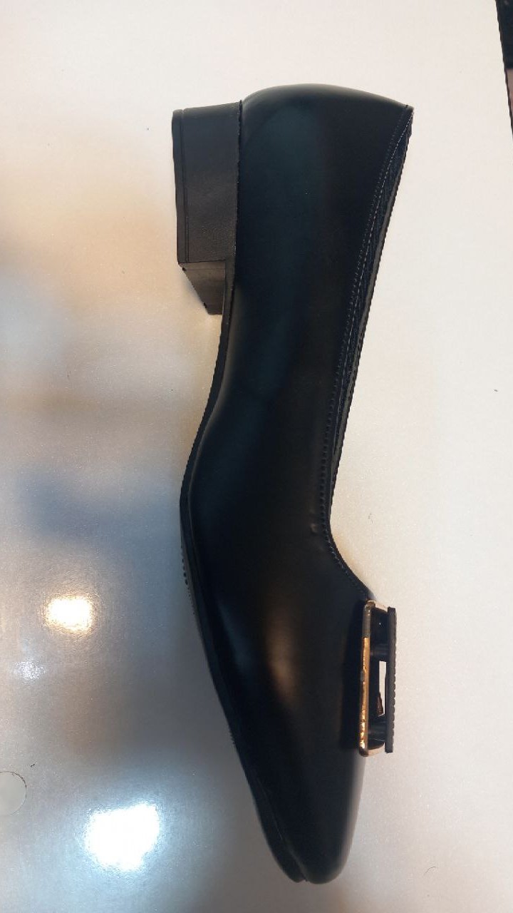 کالج یراق دار چرمی پاشنه 2 سانت مشکی در دو مدل یراق U و مربعی