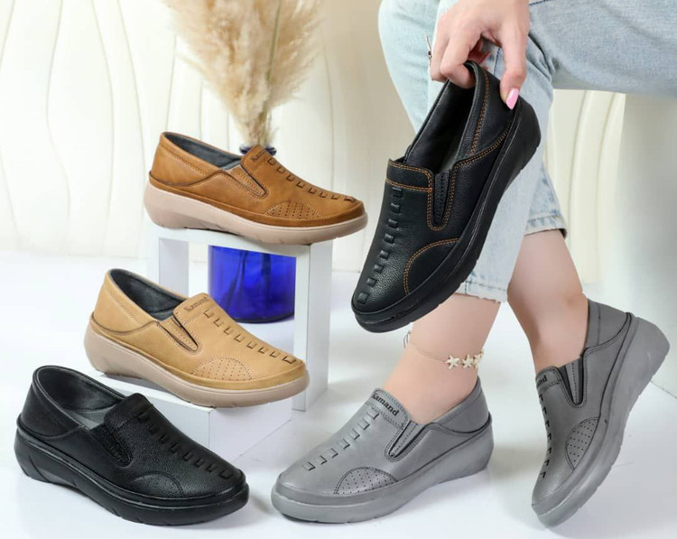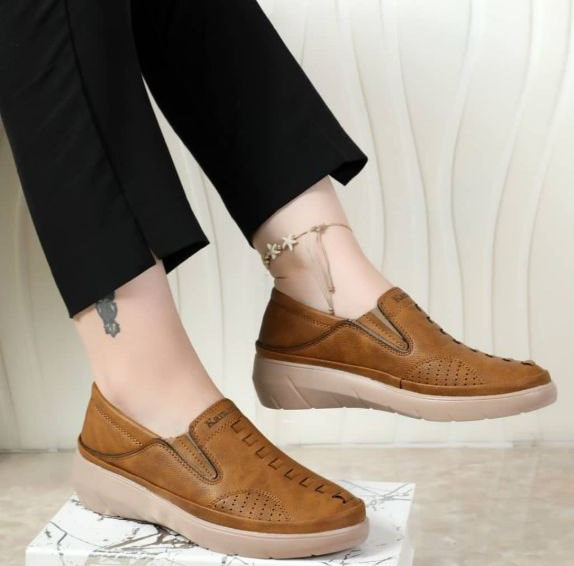 کفش تمام طبی چرمی رنگ عسلی