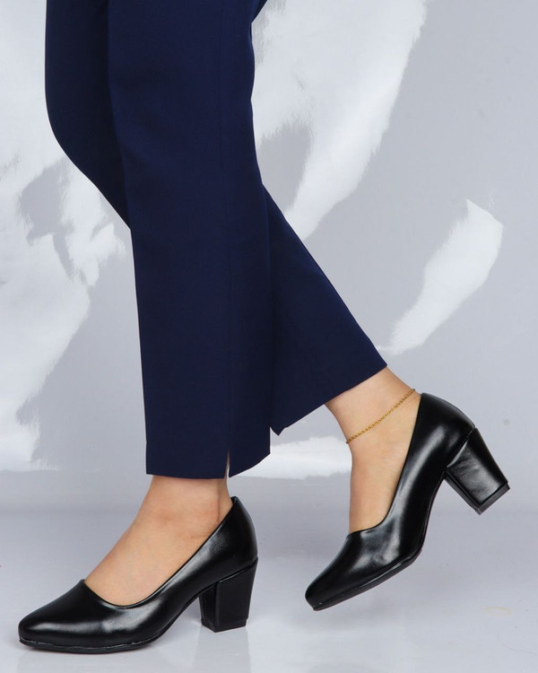 کفش پاشنه 5 سانت ساده مشکی چرمی