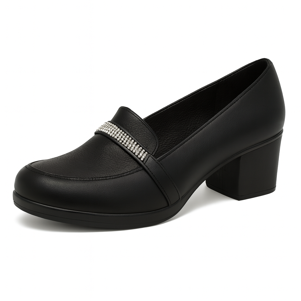 کالج پاشنه دار نگینی یک محصول با کیفت و راحت همراه با زیره پی یو بسیار نرم میباشد که زیبایی و راحتی را برای شما عزیزان به ارمغان می آورد . جنس رویه کار از بهترین نوع چرم مصنوعی میباشد و نگین های روی کار بدون ریزش میباشد . (کار بی کیفیت نداریم)